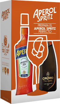 Licor «Aperol» 70 cl. + vino spumante dry «Cinzano To-Spritz» 75 cl. 145 cl. (El litro a 11,66 €).