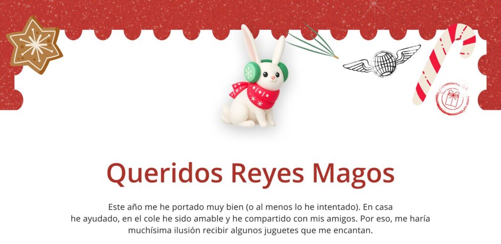 Este año he sido una persona bastante buena (aunque alguna travesura cayó). He ayudado, he compartido y he intentado portarme genial. Así que si queréis, podéis dejarme unos juguetes bajo el árbol… prometo seguir portándome bien (¡lo intentaré!).