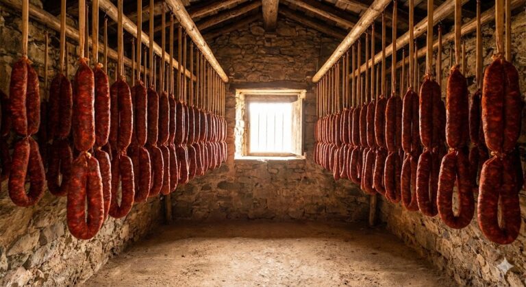La tradición de la «matanza» en los pueblos no era solo un evento logístico, era una fiesta social donde se aseguraba la despensa para todo el año. El chorizo era la joya de esa corona. Cada región, e incluso cada familia, tenía su receta secreta: más o menos picante, con un toque de orégano, con un ahumado específico…