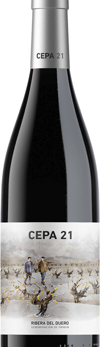 8 meses en barrica. Bodegas Cepa 21 D.O.Ribera del Duero 75 cl. (El litro a 16,92 €).