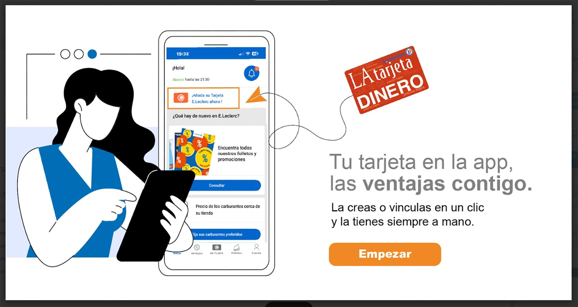 Inicio Ventajas Solicitar tarjeta Protege tu ahorro Preguntas frecuentes Ticket E.Leclerc Solicitar tarjeta Con la tarjeta E.Leclerc tus compras te saldrán cada vez más económicas gracias a las ofertas de las que podrás beneficiarte por tenerla y por el saldo acumulado en ella.