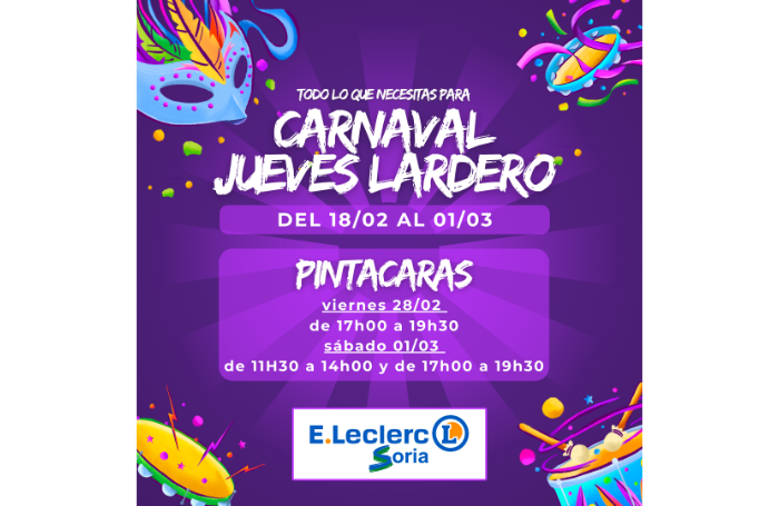 Acércate a E.Leclerc Soria del 18 de Febrero al 01 de Marzo: y encuentra todo lo que necesitas para disfrutar de Carnaval y del Jueves Lardero.